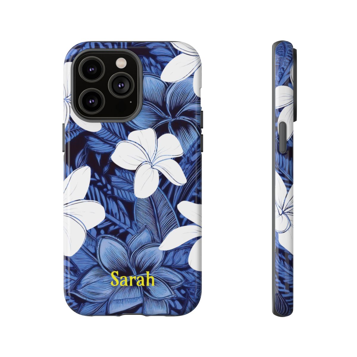 Eternal Blue Plumeria Personalized Tough Case for iPhone